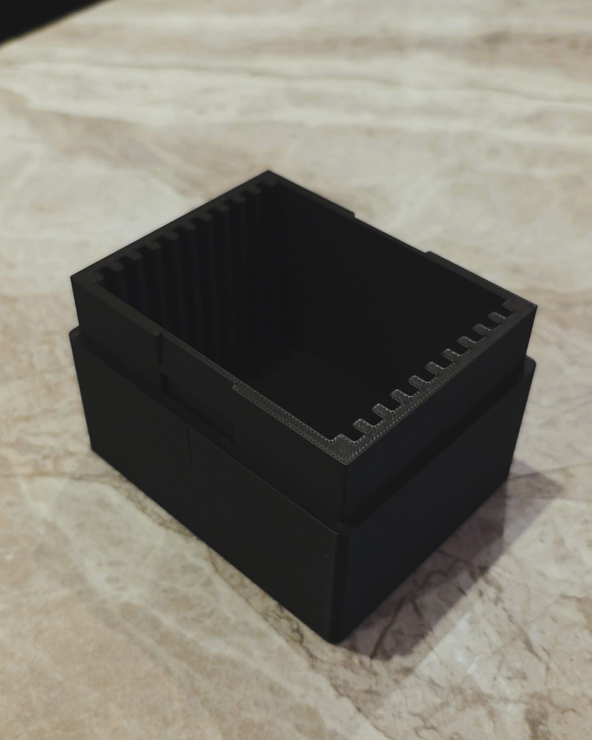 تم تصنيع هذا البكس باستخدام تقنية الطباعة ثلاثية الأبعاد عالية الدقة ليمنحك جودة تصنيع متقنة وتفاصيل نظيفة تعكس فخامة المحتوى الذي بداخله , التصميم الداخلي المقسم يوفر تثبيتًا مثاليًا لكل سبيكة
