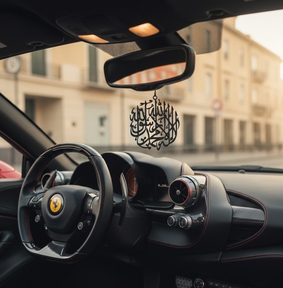 أضف لمسة من الطمأنينة والأناقة إلى مقصورة سيارتك مع هذه التعليقة الفريدة. صُممت خصيصاً لمن يبحث عن التميز، حيث تجمع بين جمال الخط العربي الكلاسيكي والتصميم العصري.