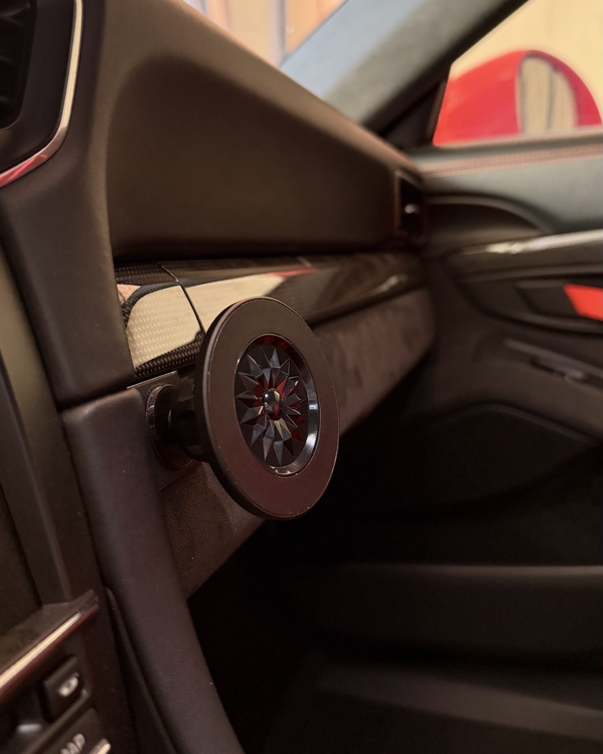 قاعدة ماق سيف مخصّصة لسيارات بورش 991.1 و 991.2 من موديل 2013 الى 2019 ، تركب في مكان مناسب جداً بجانب الشاشة بدون أي تخريم أو تعديل أو لعب بالديكور نهائياً. تصميمها ثابت وقوي، يمسك الهاتف مغناطيسيًا عن طريق الماق سيف ويضمن ثبات ممتاز أثناء القيادة.