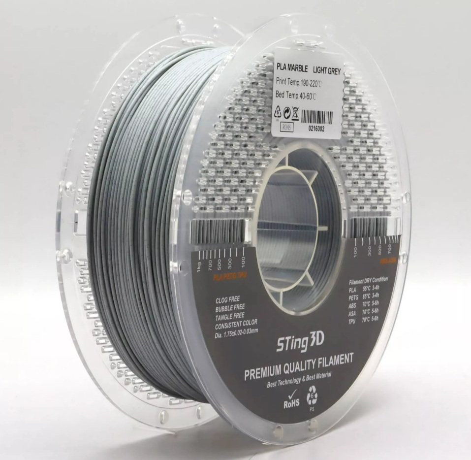 إذا كنت تبحث عن نتائج طباعة نظيفة، ثابتة، وسهلة، فإن Sting3D PLA Marble Pro هو الخيار المثالي لك. تم تطوير هذا الفيلمنت ليمنحك أداء موثوق ولمسة نهائية ناعمة ولامعة، سواء كنت مبتدئ أو محترف في الطباعة ثلاثية الأبعاد.
